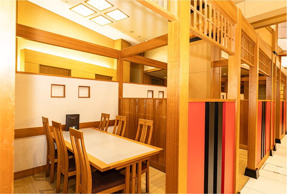 가족으로 느긋하게 보낼 수 있는 작고 자리, 차분한 분위기의 반개실, 동료와 둘러싸는 테이블석까지.