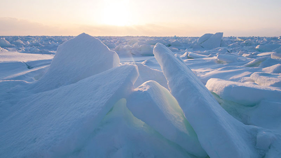 오호츠크해의 장대한 스케일에 펼쳐지는 유빙은 홋카이도에서 약 1,000km 떨어진 아득히 러시아의 아무르강 하구 부근의 얼음이 바람에 불어 해류를 타고 점차 성장하면서 오호츠크해 연안에 밀려옵니다.